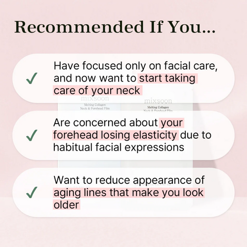 Give your skin the attention it deserves with the Mixsoon Melting Collagen Neck & Forehead Film, a high-performance treatment designed to visibly firm, hydrate and revitalise areas prone to sagging and fine lines. Infused with a powerful blend of collagen (74%), hydrolysed collagen (19%), glutathione, and hyaluronic acid, this ultra-thin film melts directly into the skin, delivering active ingredients deep into the dermal layer.